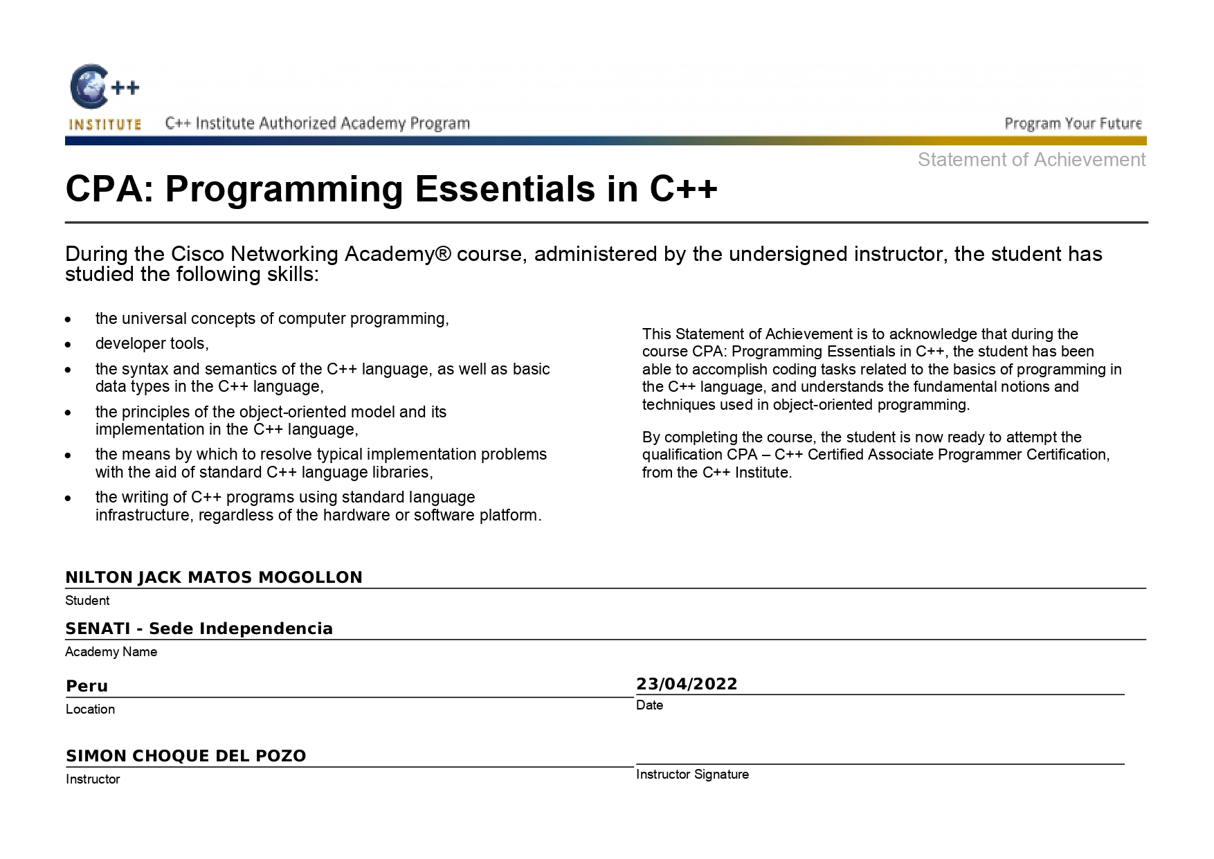 I dedicated myself to the study of the essential foundations of the C++, C and Python programming languages. During this period, I immersed myself in understanding and practicing these languages.