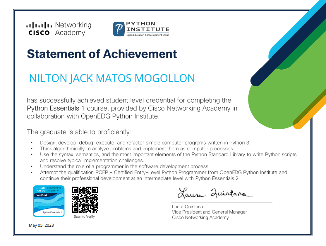 Dedicate my time to study at this institution and pursue a technical career in computer science, focusing on learning about programming logic has been a fundamental milestone in my growth academically and in the advancement of my professional career. I am excited by the prospects that open up before me thanks to this solid base of knowledge in the field of computing. I have developed Essential skills to design efficient algorithms and apply them in practical situations. Besides, I have had the opportunity to explore various areas of computing, from web programming to cybersecurity, which has given me a broad and solid vision of the discipline.
